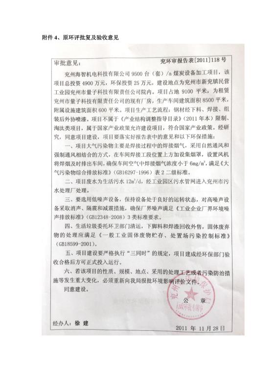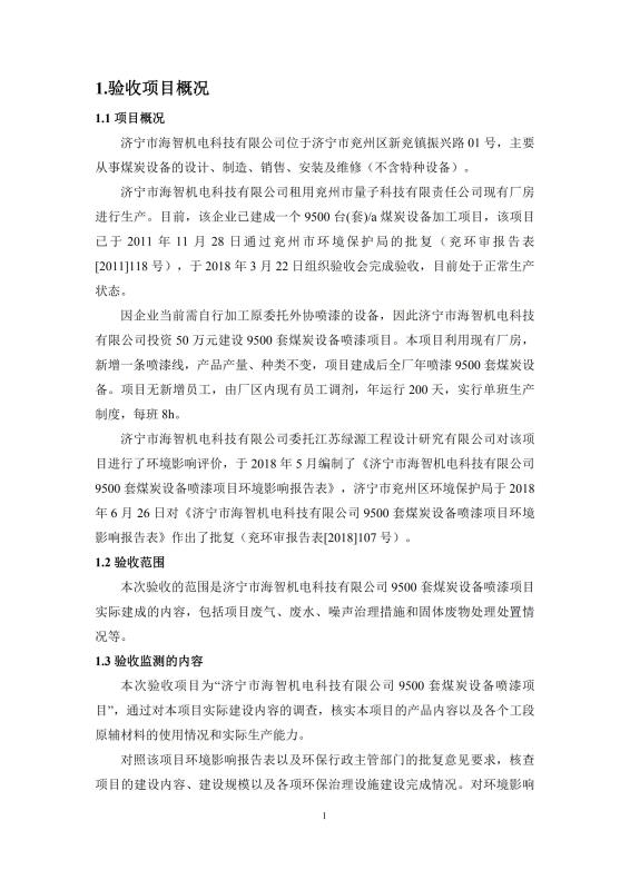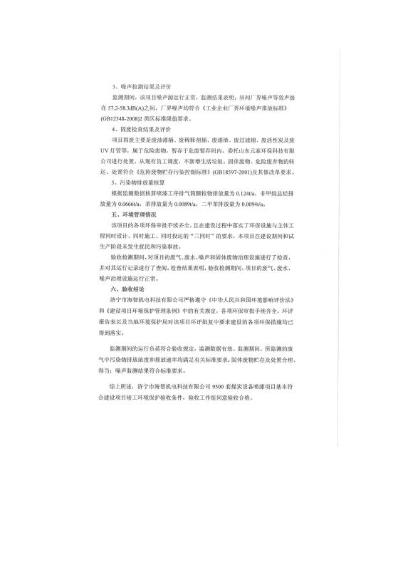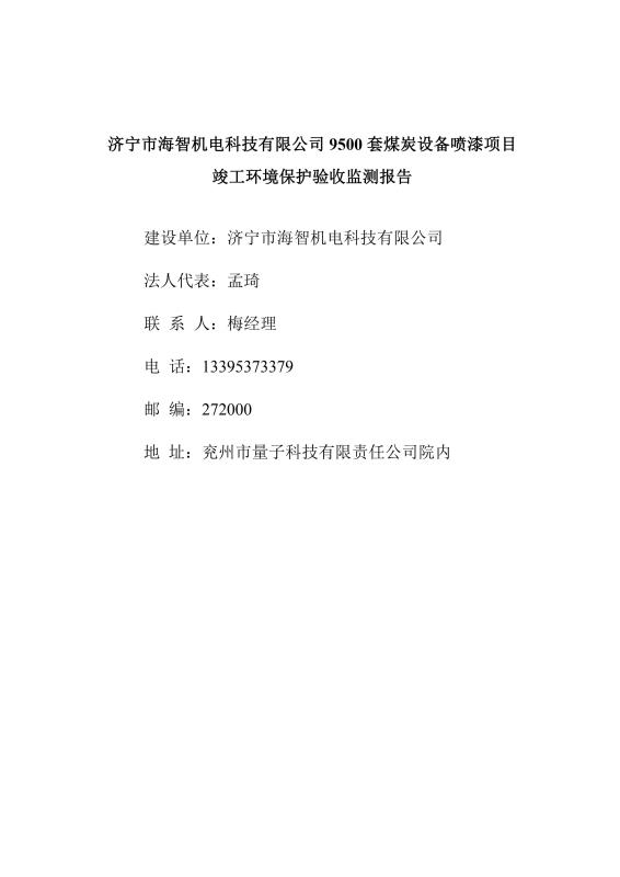當(dāng)前位置:網(wǎng)站首頁 > 現(xiàn)代前沿科技 高新產(chǎn)品動(dòng)態(tài) > 9500套煤炭設(shè)備噴漆項(xiàng)目竣工環(huán)境保護(hù)驗(yàn)收監(jiān)測(cè)報(bào)告