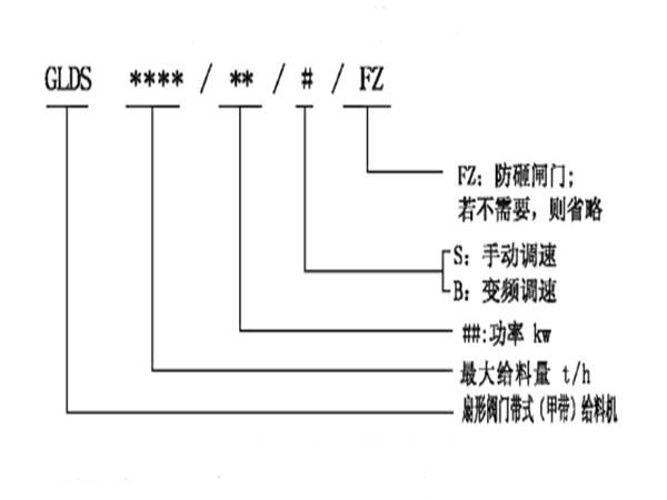 扇形閥門帶式(甲帶)給料機型號說明: